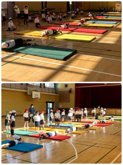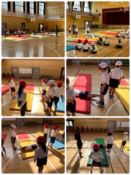 お互いの動きを見合って、友達の動きのよいところや、アドバイスを伝え合っていました。
