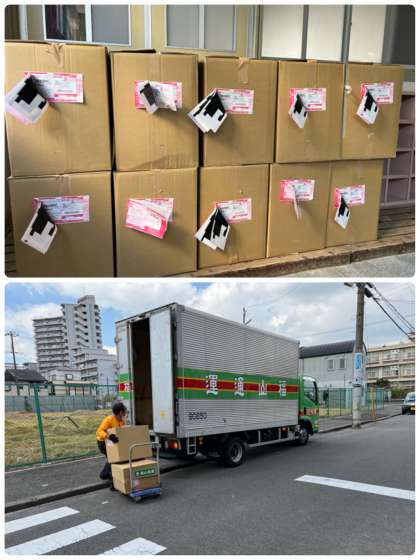 今日、取りに来ていただき、ユニクロを通じて、世界の子どもたちに届けられます。