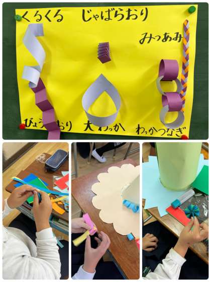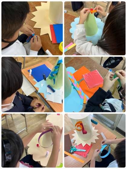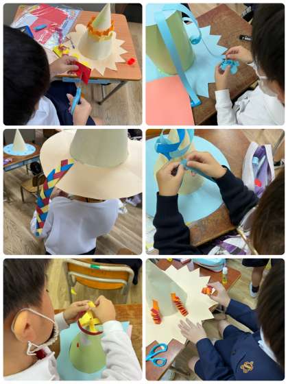 学習したいろいろな紙工作の技法を使って、素敵なぼうしを作っています。