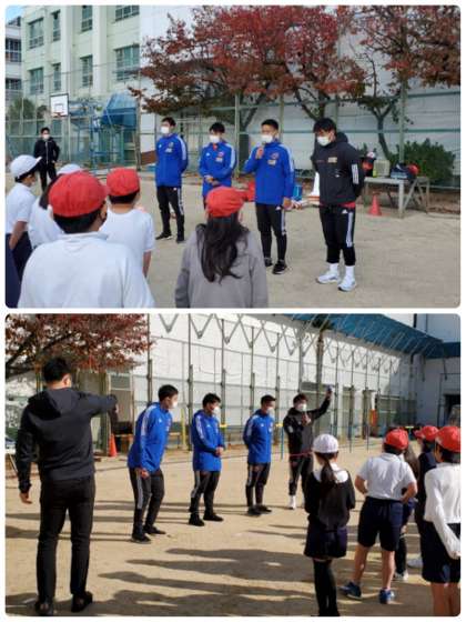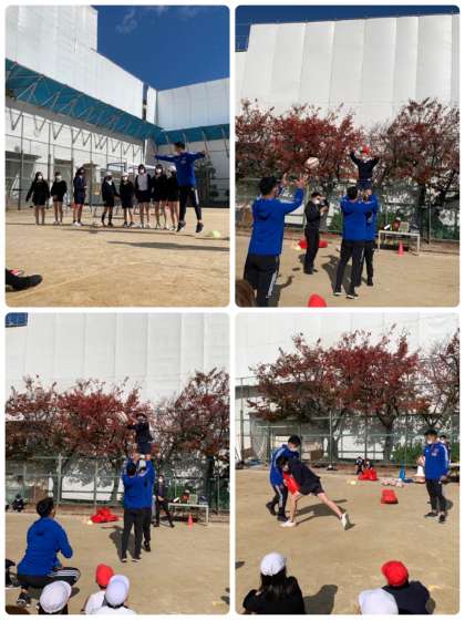 今日は、ラグビーチーム「NTTドコモレッドハリケーンズ」のみなさんにお越しいただき、体験を通してスポーツの楽しさを教えていただきました。