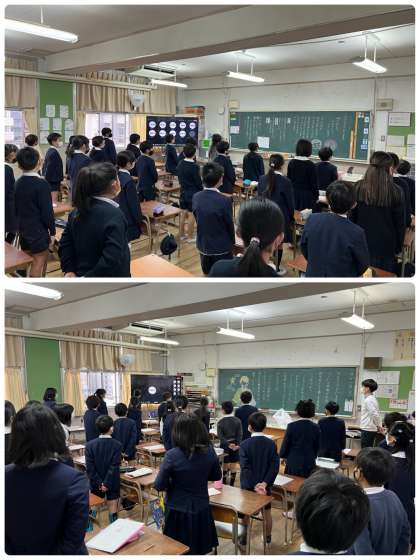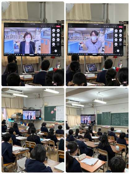 Teamsでつないで、各教室で校長先生のお話を聞きました。