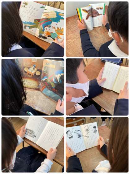 図書室で借りた本や学級にある本などを選んで、15分間静かに読んでいました。