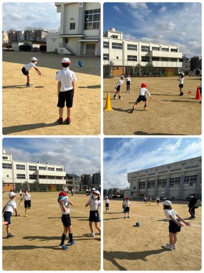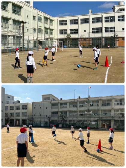 パスをしたり打ち返したりする活動を通して、協力してラリーを続ける楽しさやねらって打ち返す楽しさを味わっていました。