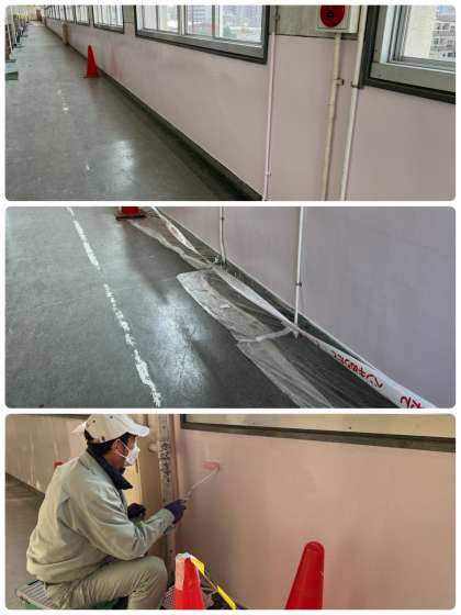 管理作業員さんが、校舎の壁を塗りなおしてくださっています。