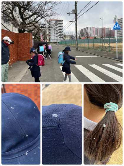 ひらひら舞い落ちてくる雪に、頭や肩に落ちる雪に、子どもたちは大喜びでした。
