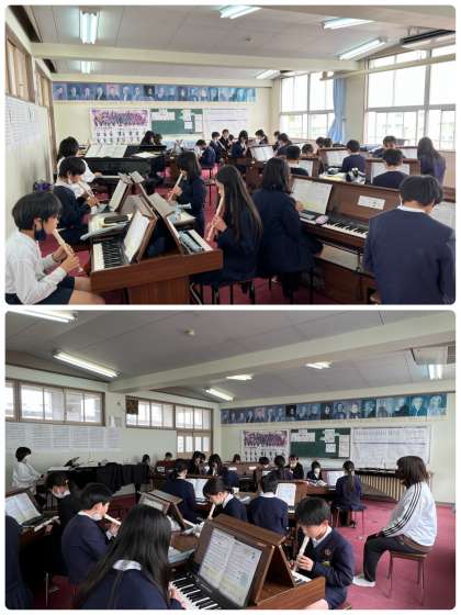 今日は、卒業式に向けて「威風堂々」をリコーダーで演奏しました。