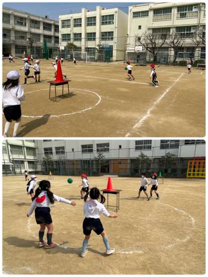 力いっぱい投げたり、パスをしたり、友達と声をかけ合ったり。