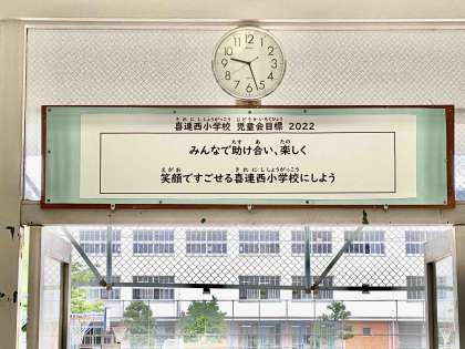 2022年度の「みんなで助け合い、楽しく笑顔で過ごせる喜連西小学校にしよう」を目標に、1年間頑張っていきます!