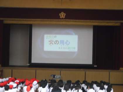 1・2年生は、避難をした後、講堂でDVDをみながら学習しました。