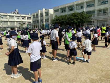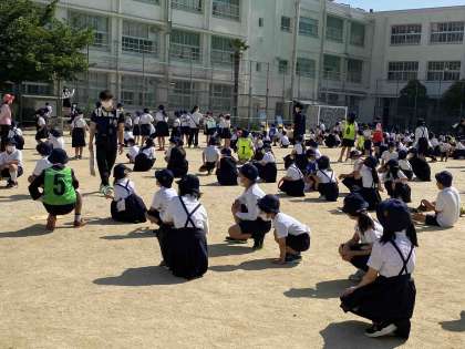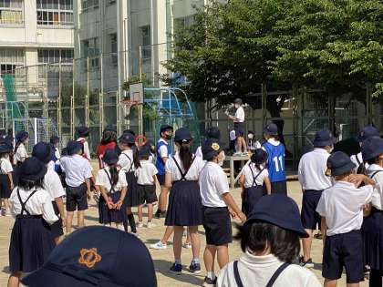 たてわり班に分かれて、集会委員が考えたゲームに挑戦しました。