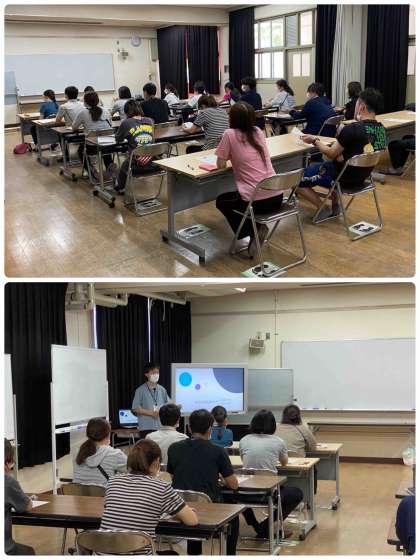 放課後に先生たちが多目的室に集まって勉強会をしました。
