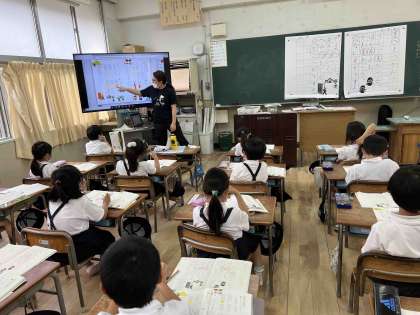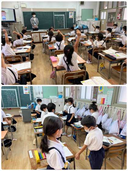 また、文章を考えて交流したり、友だちの意見を聞いてハンドサインで答えたりしました。