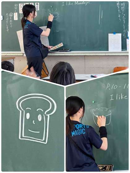 また、イラストから何曜日か当てるゲームもしました。先生が描いた素敵なイラストから、子どもたちは何曜日なのかを、楽しく学ぶことができました。