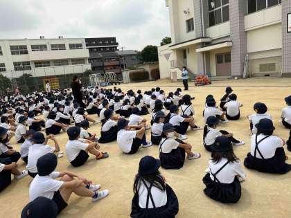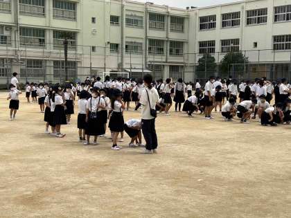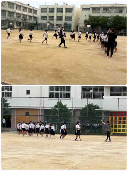 各学級で事前指導後、放送のタイミングで運動場に集まりました。