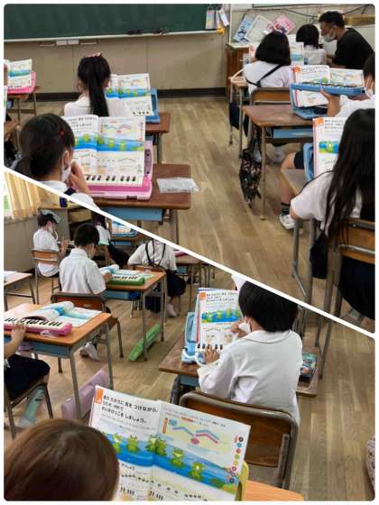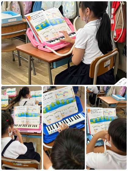 「かえるのうた」を鍵盤ハーモニカで演奏していました。