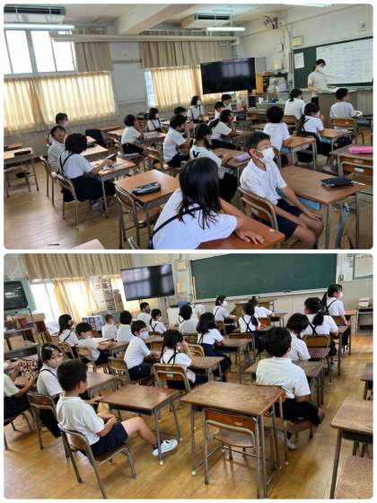 暑さ対策の観点から、児童朝会は放送朝会で行いました。