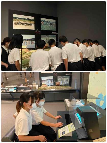 社会見学で弥生文化博物館・池上曽根史跡に行っている6年生から写真が届きました。