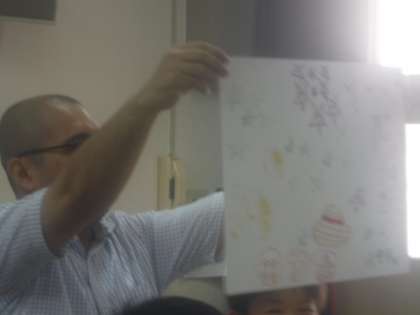 6月30日(火)多目的室で毎週火曜日 アーネスト・カピリ先生が来られて、外国語の授業をしてくださっています。今日は「number」の学習だったようです。絵を見せてこの中に○○が「How many」ありますか? と質問してみんなで考えていました。とっても楽しそうでした。こうやって英語に毎週楽しみながら親しむ機会をつくって、中学校へつないでいっています。