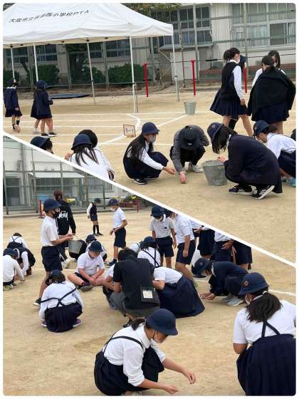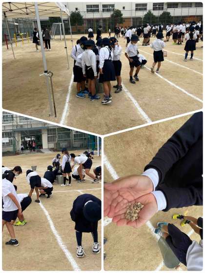運動会に向けて、一人一人がいっぱい石を拾っていました。安全に運動会ができるように、みんなで頑張りました。