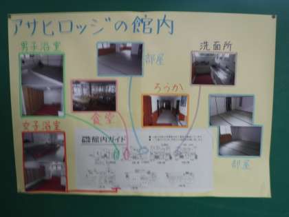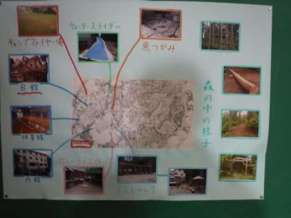 林間学習で行く場所の紹介をしています。
