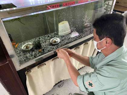 いつもきれいな水そうで、魚たちも元気に泳いでいます。きれいになった水そうをぜひ注目して見てください。