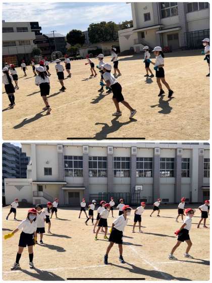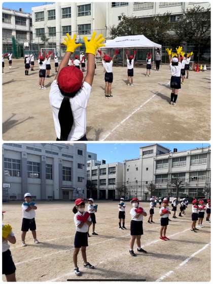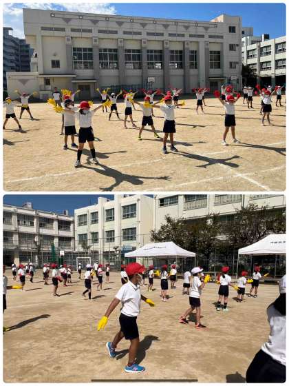 2年生の団体演技では、全身を使って表現しています。なめらかな動き、素早い動きを組み合わせながら見ている人を魅了します。
