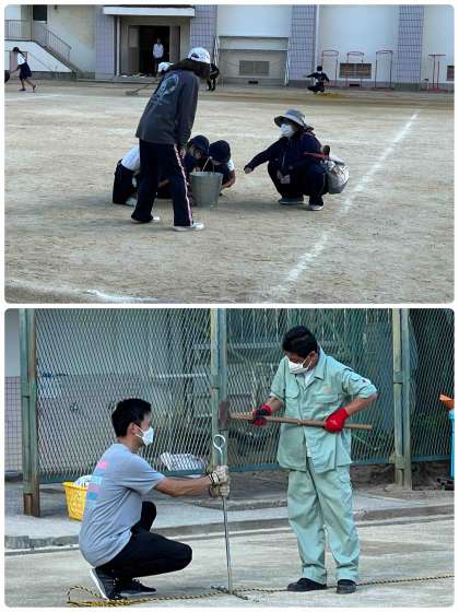 6時間目に、5・6年生が運動会の前日準備をしました。