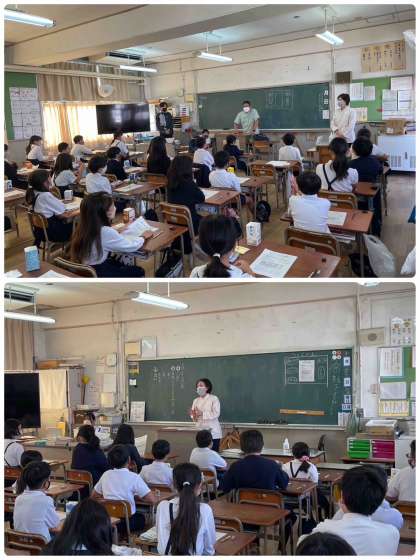 今日の4年生の学習では、学校歯科医、歯科衛生士の方が来られて