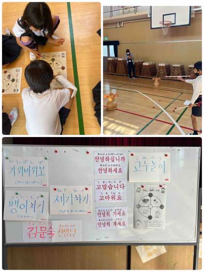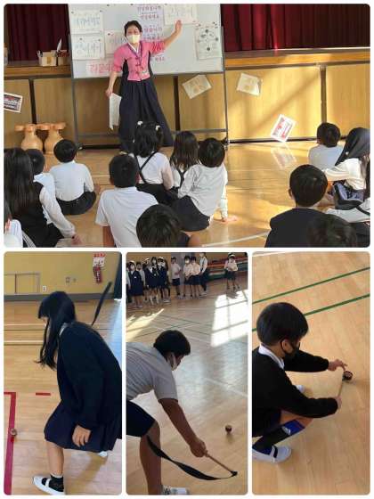 いつもムグンファの会で教えていただいていますソンセンニムが、3年生へ韓国・朝鮮の遊びを教えてくれました。