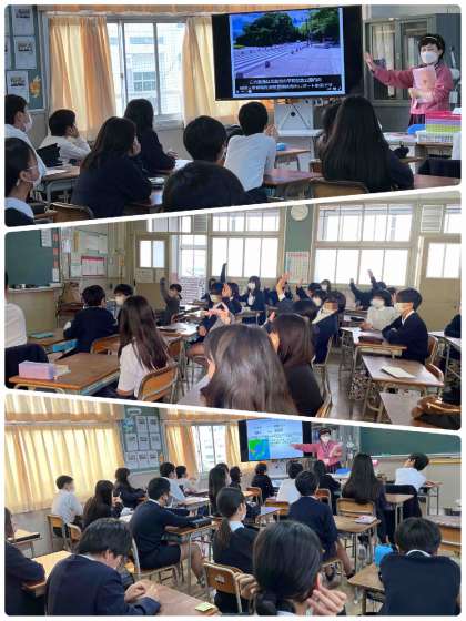 6年生ということで、韓国と日本の歴史についての話がありました。修学旅行で行った、広島平和記念公園の慰霊碑の映像を見ながら、平和の尊さについて考えました。