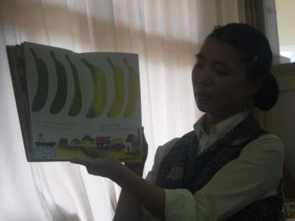 子どもと本を結ぶために、様々な手法でのアプローチを実際に見せていただきました。絵本の読み聞かせ、読書のアニマシオン、ストーリーテリング、ブックトーク、ビブリオバトルなどを通して、20冊ほどの本をご紹介いただきました。