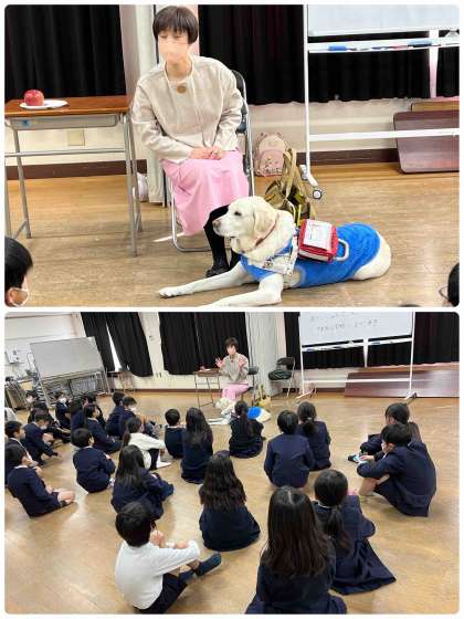 3年生の学習で、浅井純子さんと盲導犬ヴィヴィッドが講師で来られました。