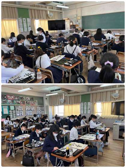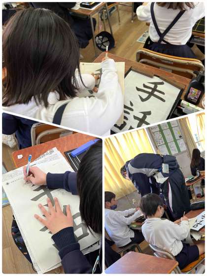 一度書いた後に、どんなところに気を付けたらいいのか、お手本に鉛筆で書き込みました。