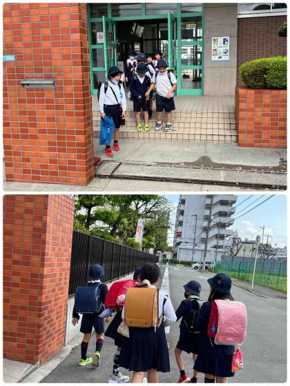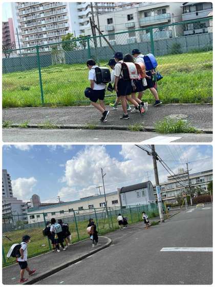 月曜日は、5時間授業です。授業が終わると子どもたちは、元気に下校したり、運動場で遊んだりしていました。