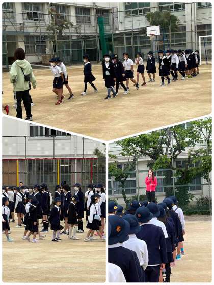 少し肌寒い中でしたが、しっかりと話を聞きながら集中して参加することができました。帰りは、きれいに並んで帰ることもできました。