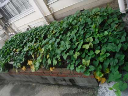 ここはなかよし(特別支援)学級の学習園です。イモを植えていたのが、こんなに葉を広げています。この分だと実りの秋の収穫が楽しみですね。