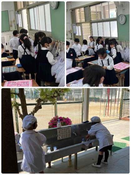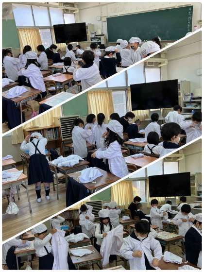 できることが日ごとに増えて、本当に素晴らしいです。給食の用意も、素早くエプロンに着替えて準備をしていました。1年生も、いっぱい頑張っています。