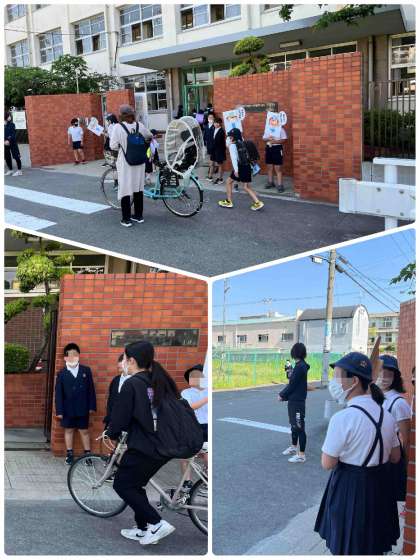 そこで、朝の登校時に、児童会のメンバーが進んであいさつしながら頑張っていました。