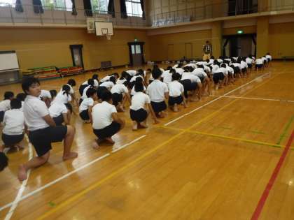 各学年で団体演技のダンス・踊り、組体操などの練習、団体演技の練習などに取り組んでいます。この時期は、講堂と運動場を各学年で割り当てる特別時間割を組んでいます。子ども達が連日の練習に元気に取り組むことができますよう、毎日しっかり栄養と休養をとらせていただき、水筒や汗拭きタオルを毎日持たせていただきますよう、ご家庭でも体調管理へご協力よろしくお願いいたします。