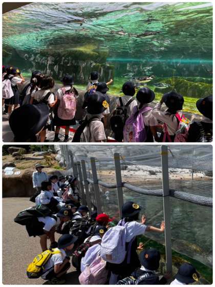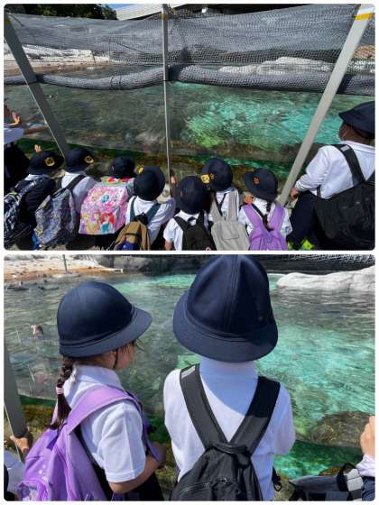 良い天気の中、1年生は電車に乗って、天王寺動物園に行きました。