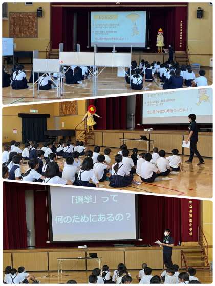 実際に使用している投票箱に票を入れたり、センキョンというゆるキャラが登場したりと、楽しく選挙について学ぶことができました。