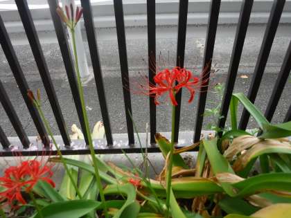 朝から4年生の担任の先生が彼岸花を摘んでおられました。