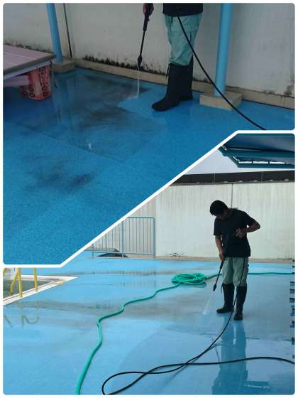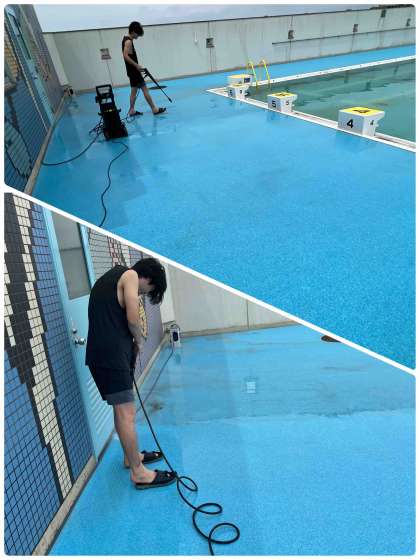 6月28日のプール開きに向けて、プールの清掃を管理作業員さんを中心に始めました。