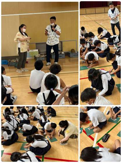 現在、歴史を勉強している6年生。今日は、弥生文化博物館の方が来られて、弥生時代の学習について、体験活動を通して学びました。