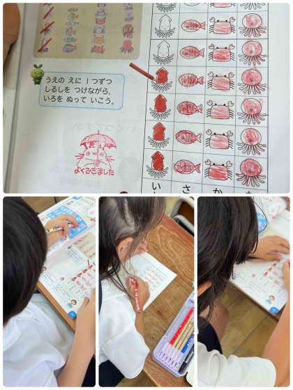 子どもたちは、1つずつ丁寧に数えたり色を塗ったりしながら頑張っていました。