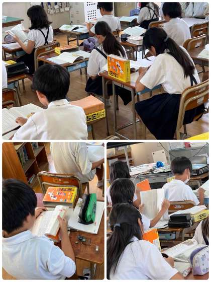 隣の学級では、国語の意味調べをしました。わからない言葉を書き出し、1つずつ調べながらプリントにまとめていました。