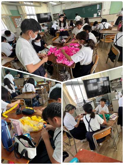 来月に迫ってきた修学旅行に向けて、千羽鶴を作りました。