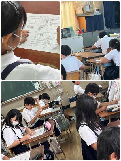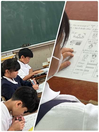 5年生の外国語の授業ではテストをしました。