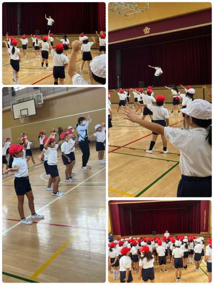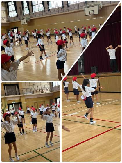 2年生は、5時間に講堂で運動会のダンスを練習しました。