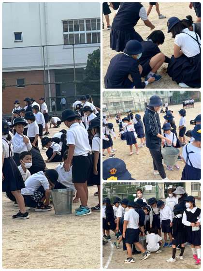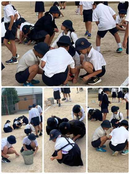 朝会後は、運動会に向けて、運動場の石拾いをしました。